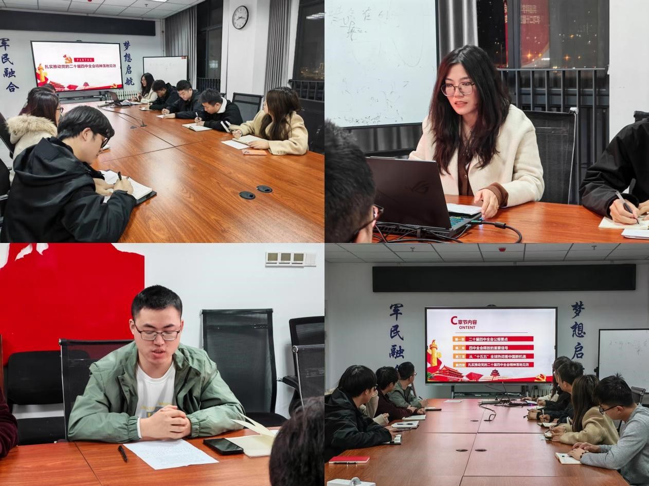 此次专题学习会,让支部成员深刻领会了二十届四中全会的重大意义和实践要求。下一步,支部将持续深化全会精神学习贯彻,通过主题研讨、科研实践联动等形式,推动理论学习与专业发展深度融合,引导全体党员以饱满的热情和务实的作风,在推进国防和军队现代化建设的征程中书写青春华章。