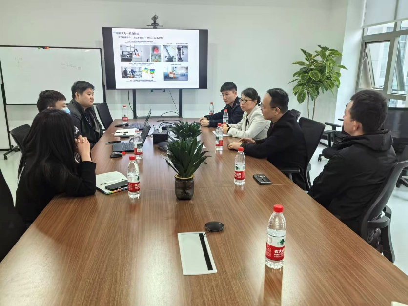 教师黄姝娟、夏子恒及学生代表一同参加调研。睿感机器人销售部李总、技术负责人孟则辉、赵雪莹等热情接待了肖锋院长一行,双方进行了深入而务实的交流。